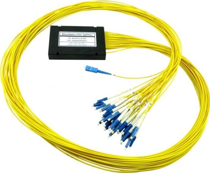 • BlueOptics PLC Splitter ABS Box, Eingang:  LC-UPC - Ausgang: LC-UPC 1x32, 1260nm bis 1650nm, Singlemode G.657.A1 E9/125µm, niedrige Eingangsdämpfung, RAL9004 (schwarz), 1 Meter Länge Eingang und Ausgang (BOSA-LU-LU-1x32)