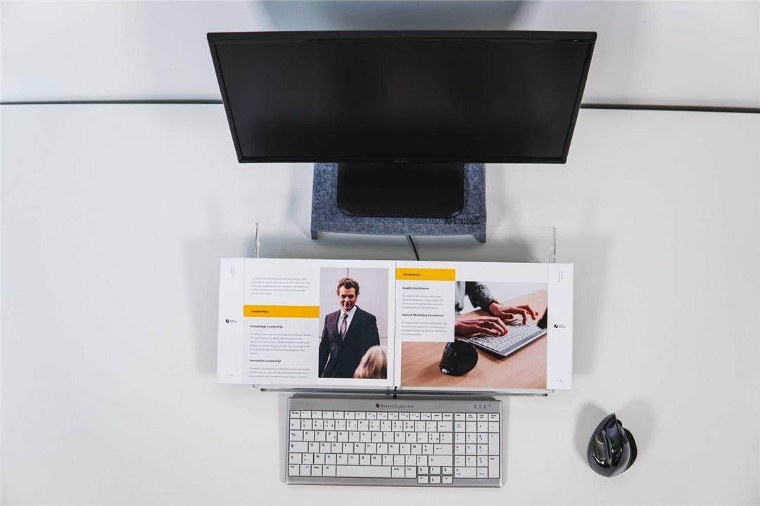 Der Q-doc 100 ist ein ergonomischer Dokumentenhalter, der ideal für niedrige Monitorpositionen ist. Mit diesem Dokumentenhalter arbeiten Sie in einer körperzentrierten, geraden Haltung und Ihr Blickwinkel auf die Dokumente ist optimiert. Der Dokumentenhalter Q-doc 100 besteht aus klarem, nachhaltigem Acrylmaterial und ist stabil genug, um schwere Ordner bis zu 5 kg zu tragen. Unter dem Q-doc 100 ist genügend Platz für Ihre Tastatur. Die Kante sorgt dafür, dass Ihre Dokumente nicht vom dem Dokumentenhalter rutschen. Dieser Dokumentenhalter ist mit oder ohne Schaumstoffrand erhältlich. Der Schaumstoffrand kann beim Schreiben von Notizen angenehmer sein. Verbessern Sie Ihre Körperhaltung, optimieren Sie Ihren Blickwinkel und arbeiten Sie ergonomisch in einer Linie mit dem Q-doc 100.