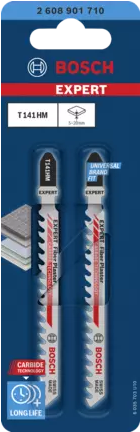 Bosch 2608901710 Stichsägeblatt EXPERT - Herausragende Lebensdauer in abrasiven Baumaterialien! Große - konstante Zahnteilung für dicke - zähe Materialien. Harte Materialien müssen mit einem robusten Stichsägeblatt bearbeitet werden - die Schnitte müssen aber trotzdem sauber sein. Abgenutzte Blätter erledigen die Arbeit nicht befriedigend. Daher ist das EXPERT `Fiber Plaster¿ langlebig und qualitativ hochwertig. Seine Carbide-Zähne schneiden die abrasivsten Bauwerkstoffe wie Zementfaserplatten - Gipskartonplatten und glasfaserverstärkte Kunststoffe. Außerdem sorgen sie für maximale Produktivität. Das Bosch EXPERT `Fiber Plaster¿ Stichsägeblatt wurde entwickelt - um Schnitte in die abrasivsten Materialien zu machen. Das Blatt ist in zwei Längen erhältlich: Das T141HM für maximale Kontrolle und das längere T341HM für dickere Werkstücke. Überragende Lebensdauer dank Bosch Carbide Technology. (2608901710)
