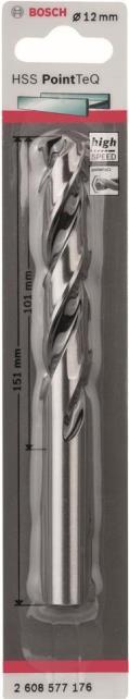 Bosch Accessories 2608577176 HSS Metall-Spiralbohrer 12 mm Gesamtlänge 151 mm DIN 338 Zylinderschaft 1 St.Metallspiralbohrer HSS PointTeQ, DIN 338, 12,0 mm, 1er-PackSelbstzentrierende Spitze verhindert Wandern, wodurch schnelles und einf