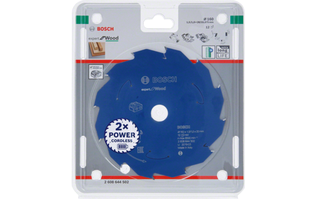Mit dem Kreissägeblatt Expert for Wood wird die Akkulaufzeit von Akkusägen maximiert. Seine extraschmale Schnittfuge und die aggressiven Zahnwinkel verringern Reibung und Materialabtrag, sodass weniger Leistung für ein müheloses, sauberes Sägen benötigt wird. Dieses Sägeblatt ist bis zu 30 % dünner als die normalen \"Expert\"-Sägeblätter, bietet aber dennoch eine erstklassige Lebensdauer. MicroteQ Carbide-Zähne gewährleisten eine hohe Langlebigkeit und erstklassige Leistung beim Sägen von Holz. Das ideale Sägeblatt für alle Arten von Holz und Holzwerkstoffen. Das Sägeblatt passt bei allen gängigen Akku-Tauch- und Handkreissägen sowie Akku-Metallsägen.Das Kreissägeblatt Expert for Wood zeichnet sich durch MicroteQ Carbide-Zähne aus, die aus besonders feinkörnigem und haltbarem Carbide aus der Eigenproduktion von Bosch bestehen und für eine erstklassige Lebensdauer sorgen. Die ProteQtion Korrosionsschutzbeschichtung verringert die Reibung, vermeidet Rost und bietet eine dauerhaft hohe Sägeleistung.Produkttext[/head]Mit dem Kreissägeblatt Expert for Wood wird die Akkulaufzeit von Akkusägen maximiert. Seine extraschmale Schnittfuge und die aggressiven Zahnwinkel verringern Reibung und Materialabtrag, sodass weniger Leistung für ein müheloses, sauberes Sägen benötigt wird. Dieses Sägeblatt ist bis zu 30 % dünner als die normalen \"Expert\"-Sägeblätter, bietet aber dennoch eine erstklassige Lebensdauer. MicroteQ Carbide-Zähne gewährleisten eine hohe Langlebigkeit und erstklassige Leistung beim Sägen von Holz. Das ideale Sägeblatt für alle Arten von Holz und Holzwerkstoffen. Das Sägeblatt passt bei allen gängigen Akku-Tauch- und Handkreissägen sowie Akku-Metallsägen.Das Kreissägeblatt Expert for Wood zeichnet sich durch MicroteQ Carbide-Zähne aus, die aus besonders feinkörnigem und haltbarem Carbide aus der Eigenproduktion von Bosch bestehen und für eine erstklassige Lebensdauer sorgen. Die ProteQtion Korrosionsschutzbeschichtung verringert die Reibung, vermeidet Rost und bietet eine dauerhaft hohe Sägeleistung.Kreissägeblatt Expert for Wood für Akkusägen und Metall-Trockensägen maximiert die Akkulaufzeit[head]Hauptmerkmale