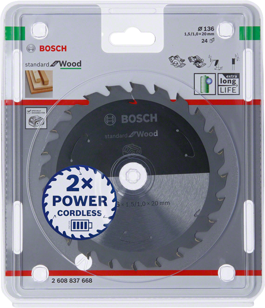 • Bosch Accessories 2608837668 Kreissägeblatt 136 x 20 mm Zähneanzahl: 24 1 St.