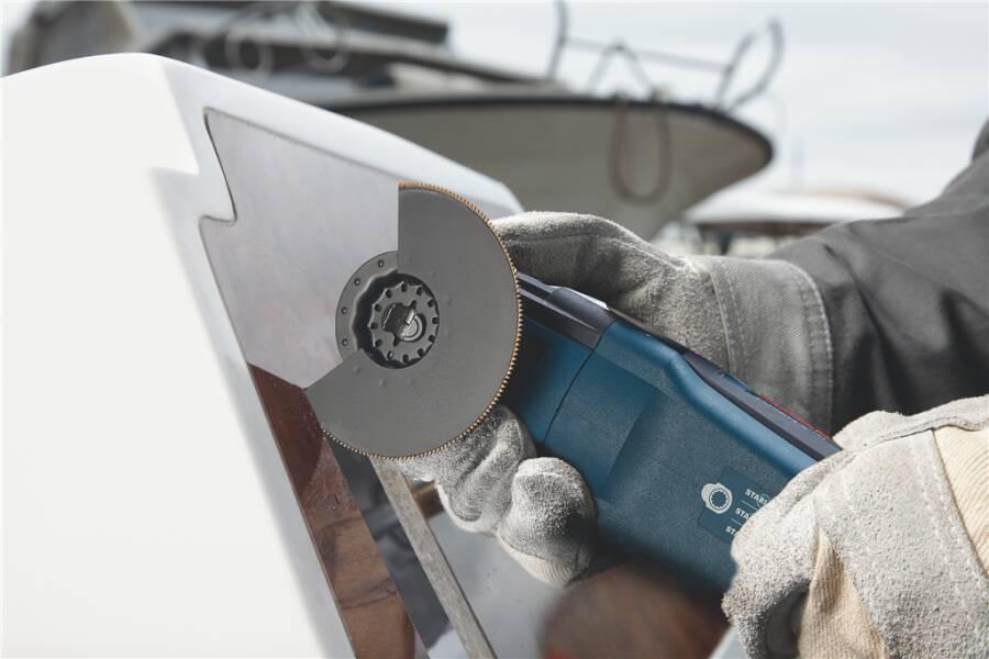 Kleine, aber harte Schleifarbeiten zum Entfernen von altem Material und zum Vorbereiten von Oberflächen sind mit herkömmlichen Schleifmaschinen oder von Hand fast unmöglich zu erledigen. Selbst wenn du die Oberfläche erreichen kannst, reißt das Schleifpapier ein. Mit der EXPERT Sanding Plate kannst du jedoch mit deinem oszillierenden Multifunktionswerkzeug Ecken erreichen und schwierige Materialien schleifen.