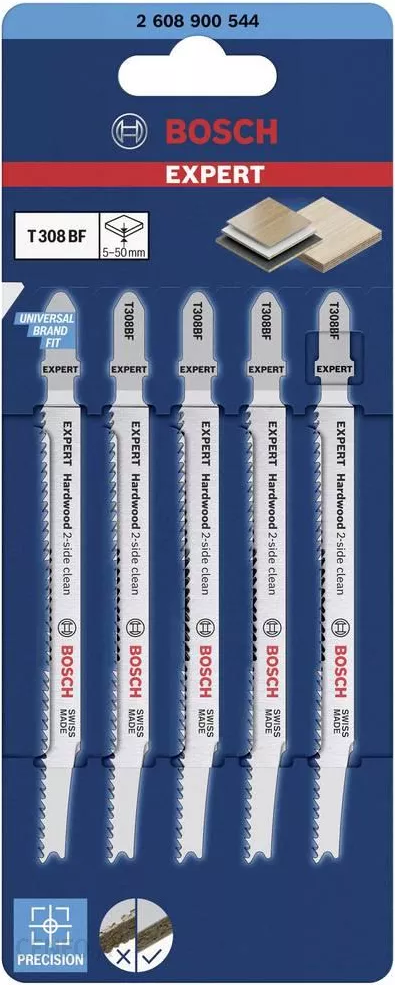 Bosch Expert Hardwood 2-side clean T308 BF - Stichsägenblatt - für Hartholz, abrasive Holzwerkstoffe, Multiplexplatten, kunststoffbeschichtete Platte - 5 Stücke |