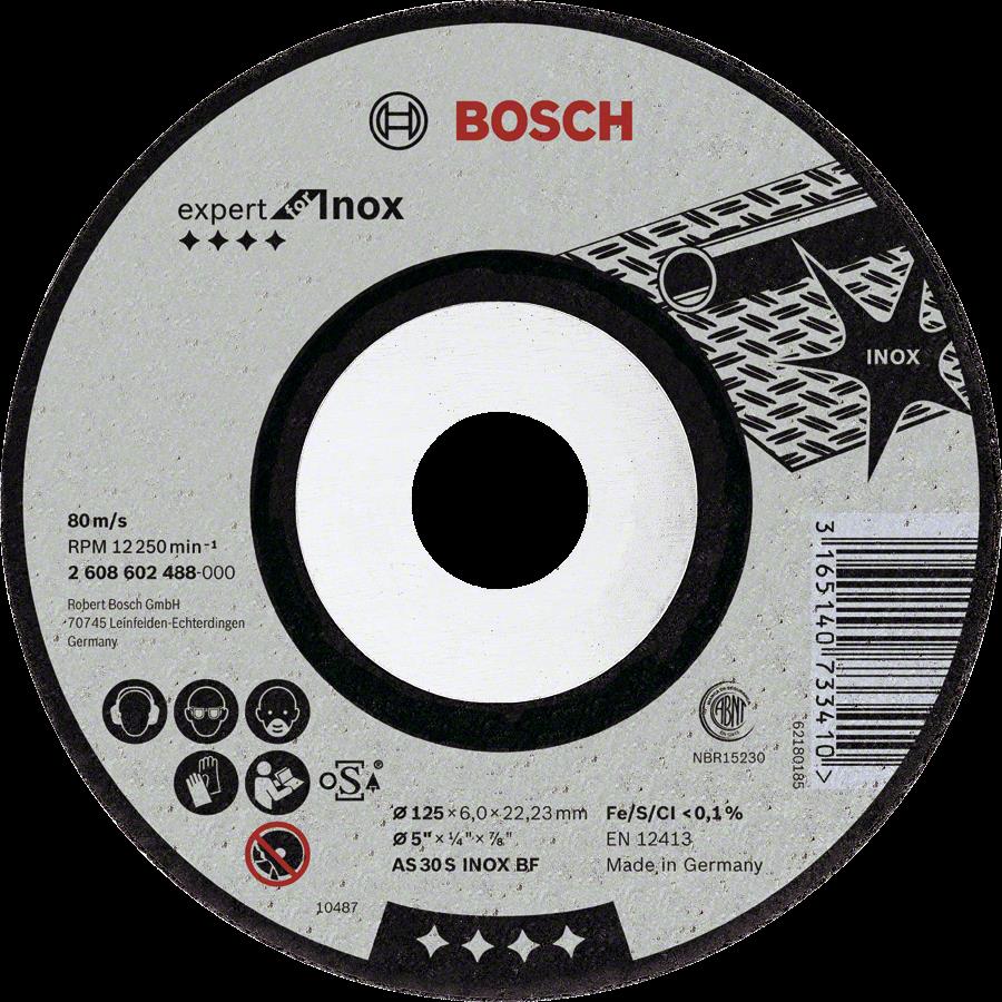 Schruppscheibe gekröpft Expert for Inox AS 30 S INOX BF, 125 mm, 22,23 mm, 6 mmSchleifkorn aus Aluminiumoxid und funktionale Füll- und Zusatzstoffe in Phenolharzmatrix, speziell für Inox geeignetFrei von eisen- und schwefelhaltigen sowie chlor