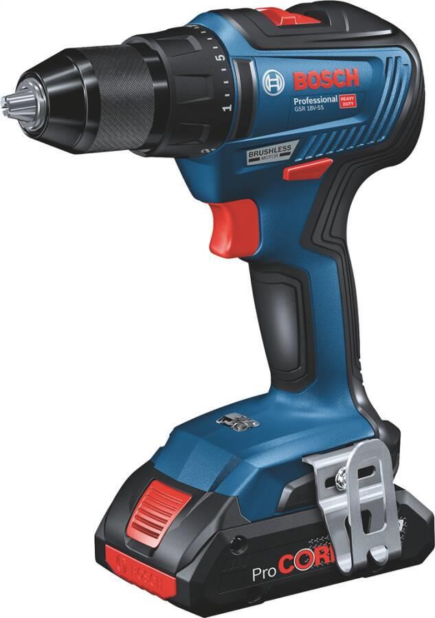 • Bosch Akku-Bohrschrauber GSR 18V-55 Professional 18Volt blau/schwarz 3x Li-Ion Akku (0615A5002P)