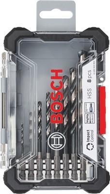 Bosch Accessories 2608577146 HSS Metall-Spiralbohrer-Set 8teilig DIN 338 1/4\" (6.3 mm) 1 SetImpact Control HSS-Spiralbohrer-Set, 8-teiligExtrem widerstandsfähiger und sehr robuster KörperSpeziell aus hartem Metall präzisionsgefräst/