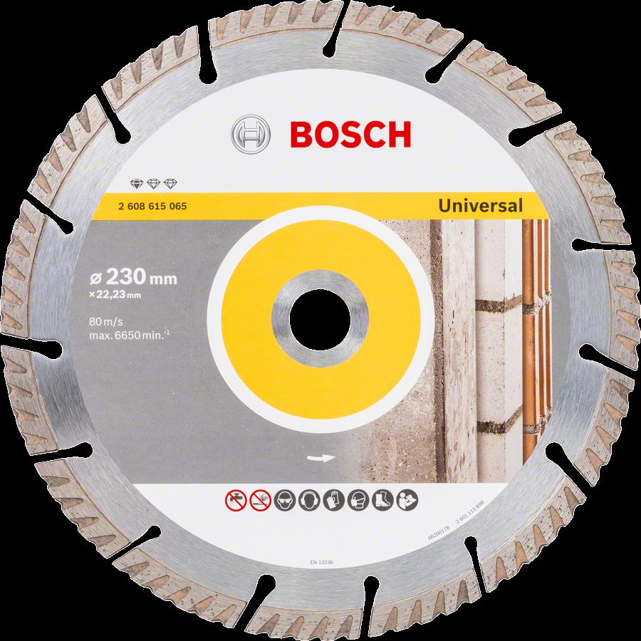 Die Diamanttrennscheibe Standard for Universal ermöglicht zuverlässiges Schneiden in allgemeines Baumaterial. Ihre optimierte Diamantmatrix ermöglicht mit ihrem hohen Qualitätsstandard zuverlässige Ergebnisse. Das Bosch-Kompetenzzentrum Diamant in der Schweiz gewährleistet diesen Standard durch das kontinuierliche Bereitstellen konsistenter Qualität. Geeignet zum Schneiden von Beton und Mauerwerk.