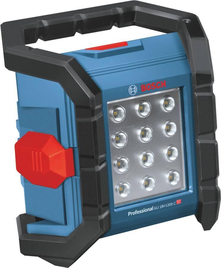 Die GLI 18V-1200 C Professional ist die kompakte und robuste Bosch Lampe aus dem 18V-Sortiment. Sie verfügt über 12 leistungsstarke LEDs mit bis zu 1.200 Lumen für eine hervorragende Ausleuchtung. Die Lampe ist dank einer robusten Akkuabdeckung gemäß IP 64 staubdicht und spritzwassergeschützt. Die Lampe kann bequem per Smartphone bedient werden, was eine schnelle und einfache Ferneinstellung ermöglicht. Sie bietet zwei Helligkeitsstufen, fünf flexible Standpositionen und ein 1/4"-Stativgewinde für eine schnelle Anpassung an jede Arbeitssituation. Diese Lampe eignet sich hervorragend, um ganze Arbeitsbereiche für den gesamten Arbeitstag zu beleuchten. Das Gerät ist kompatibel mit allen Bosch Professional 18V-Akkus (Professional 18V System).