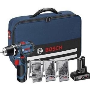 Lieferumfang: 2 x 4,0 Ah Akkupack Ladegerät GAL 1215 CV Tasche 39 teiliges Zubehörset: 25 tlg. Schrauberbitset, 7 tlg. Holzbohrerset, 7 tlg. Metallbohrerset GSR 12V-15 Professional Mit 169 mm enorm kurze Bauform ...