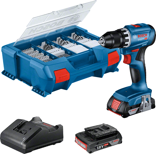 | Mitgeliefertes Zubehör | 82-teiliges Zubehörset, Ladegerät GAL 18V-20 Professional, 2 batteries |