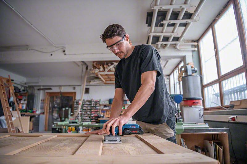 Der GSS 18V-13 Professional bietet optimale Kontrolle auf größeren Oberflächen. Dies wird erreicht durch eine ausgezeichnete Werkzeugbalance mit Schwerpunktlage nahe am Werkstück und der hervorragenden Ergonomie von Handablage und Griff. Sein bürstenloser Motor und das Bosch Professional 18V System garantieren schnellen Arbeitsfortschritt - empfohlen wird der Akku ProCORE18V 4.0 Ah. Dank seines intuitiven Konzepts und dem System mit austauschbaren Schleifplatten ist er einfach zu bedienen.