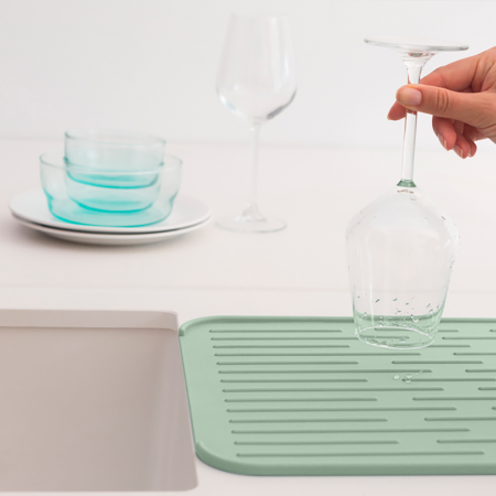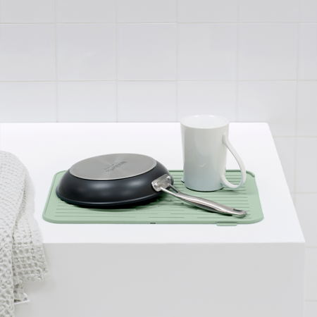 Besoin de plus de place pour laisser égoutter votre vaisselle ? Il vous suffit de sortir ce tapis égouttoir en silicone SinkSide de Brabantia. Souple et antidérapant, il risque moins de partir en morceaux. Le silicone ...