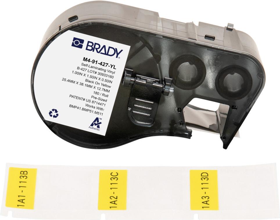 Brady, M4-91-427-YL, selbstlaminierendes Vinyl, Gelb/Transparent, 25.40 x 12.70(38.10) mm, permanent, für Kabeldurchmesser von 4.00 - 8.10 mm (180 E.) (170746)