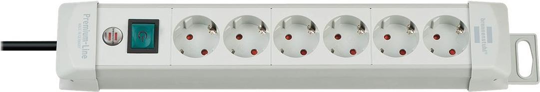 Premium-Line Steckdosenleiste 6-fach lichtgrau 3m H05VV-F 3G1,5 - Stabile, formschöne Kompaktleisten aus hochbruchfestem Spezial-Kunststoff. - Elegantes, schlankes, zeitloses, hochwertiges Design. - Schutzkontakt-Steckdosen in 45°-Anordnung, auch für Winkelstecker. - Sicherheitsschalter beleuchtet, zweipolig ein-/ausschaltbar. - Praktische Kabelaufnahme. - Mit Aufhänge-Vorrichtung. - Innovatives Befestigungskonzept. - Steckdosen mit Kinderschutz. - Patent angemeldet. - Kabellänge: 3 m - Kabelbezeichnung: H05VV-F 3G1,5 - Länge ca.: 41 cm - Steckdosen: 6 - Farbe: Lichtgrau - Stecksystem: DE