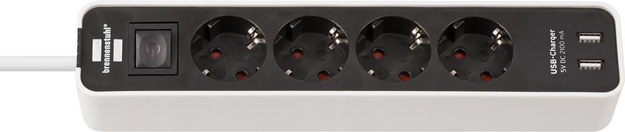 Die Ecolor-Steckdosenleiste mit USB-Ladefunktion von Brennenstuhl in der Farbe weiß/schwarz und 1,5m Kabel besticht durch ...