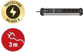 Brennenstuhl Premium Protect-Line PDU, 4 sockets, 3m, Silver/black, with switch and surge protection (1391010400)