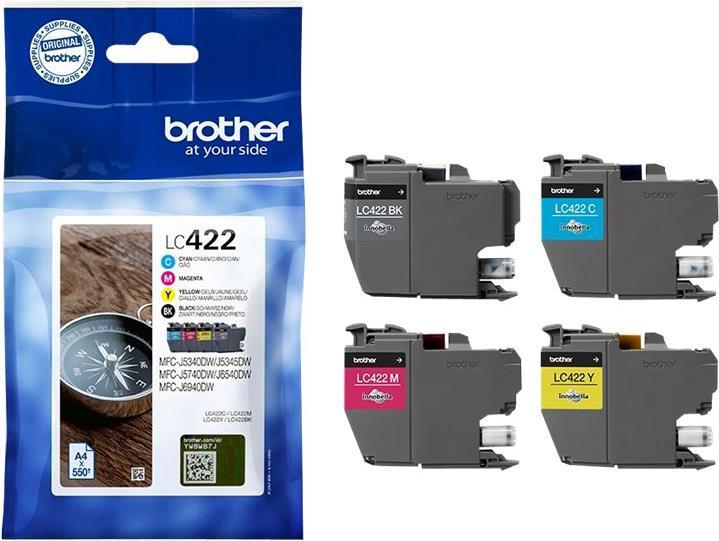 BROTHER Black Cyan Magenta and Yellow Ink Cartridges Multipack Each cartridge prints up to 550 pages - DR Version (LC422VALDR)