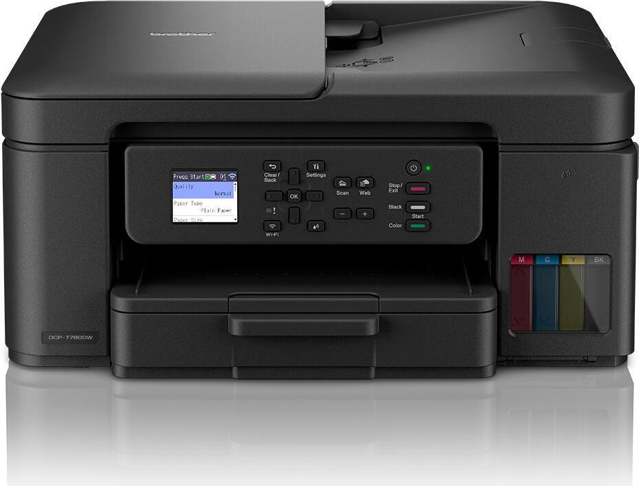 Der Brother DCP-T780DW ist ein vielseitiger All-in-One-Drucker, der Druck-, Scan- und Kopierfunktionen in einem kompakten Gerät vereint. Er bietet drahtlose Verbindungsoptionen wie WLAN und Apple AirPrint und ermöglicht so mobiles Drucken. Mit einer maximalen Druckauflösung von 1200 x 6000 DPI für Schwarzweiß und Farbe sorgt dieser Drucker dafür, dass Bilder und Dokumente präzise und detailreich wiedergegeben werden. Das Gerät verfügt über ein benutzerfreundliches 1,8-Zoll-LCD-Display, das die Bedienung vereinfacht. Es unterstützt eine Vielzahl von Medientypen und -größen und ist somit die ideale Wahl für den Einsatz zu Hause oder im Büro. Dank seines nachfüllbaren Tintenbehältersystems können Benutzer kostengünstig drucken, ohne häufig die Patronen austauschen zu müssen. Ausgestattet mit Funktionen wie automatischem Duplexdruck, einem automatischen Dokumenteneinzug für 20 Blatt und einem 150-Blatt-Papierfach bietet der Brother DCP-T780DW ein ausgewogenes Verhältnis zwischen Produktivität und Benutzerfreundlichkeit.