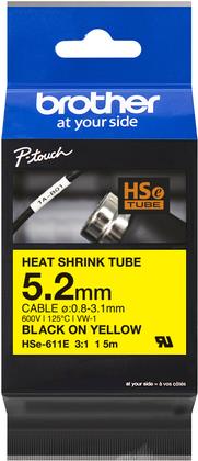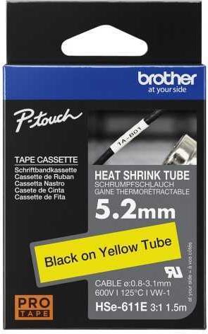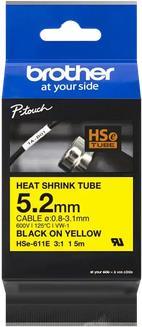 Brother HSe-611E - Schwarz auf Gelb - Roll (0.52 cm x 1.5 m) 1 Kassette(n) Hängebox - Schrumpfschlauch-Band - für P-Touch PT-D800W, PT-E300, PT-E300VP, PT-E550WVP, PT-P700, PT-P750W, PT-P900W, PT-P950NW