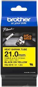 Brother HSE-651E - Schwarz auf Gelb - Roll (2.1 cm x 1.5 m) 1 Kassette(n) Hängebox - Schrumpfschlauch-Band - für P-Touch PT-D800W, PT-E550WVP, PT-P700, PT-P750W, PT-P900W, PT-P950NW