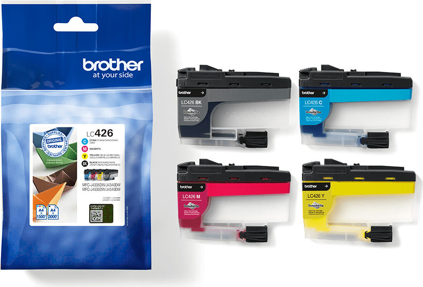 Die Tintenpatronen der Reihe LC-426 sind als günstigeres Value Pack erhältlich, das Ihre Kosten pro Seite reduziert - LC-426VAL. Original Brother Tintenpatronen werden rigoros getestet, um jedes Mal perfekt zu drucken und so Zeit und Geld zu sparen. Das Design der Tintenpatrone ermöglicht die vollständige Sichtbarkeit der verbleibenden Tintenfüllmenge.
