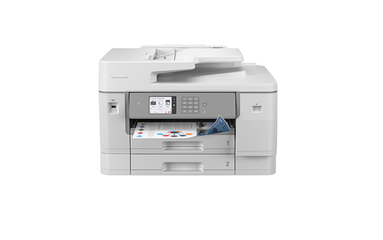 Mit dem Brother INKvestment Tank-Farb-Tintenstrahldrucker MFC-J6955DW können Sie ganz groß einkaufen. Mit der Brother MAXIDRIVE Inkjet-Technologie liefert dieser dynamische Drucker gestochen scharfe Bilder, Texte und Grafiken mit einer Druckgeschwindigkeit von bis zu 30 Seiten pro Minute in Schwarz und Farbe. Er druckt, scannt, faxt und kopiert auf Papier im Format bis zu 11" x 17" (Ledger). Der Vorteil des MFC-J6955DW ist die zweite Papierkassette mit einer Gesamtkapazität von 500 Blatt sowie die Duplexkopier- und -scanfunktion in einem Durchgang. Die Triple-Layer-Sicherheitsfunktionen schützen sensible Dokumente während des Drucks und nutzen den NFC-Kartenleser für eine einfache Authentifizierung mit Ausweisen.