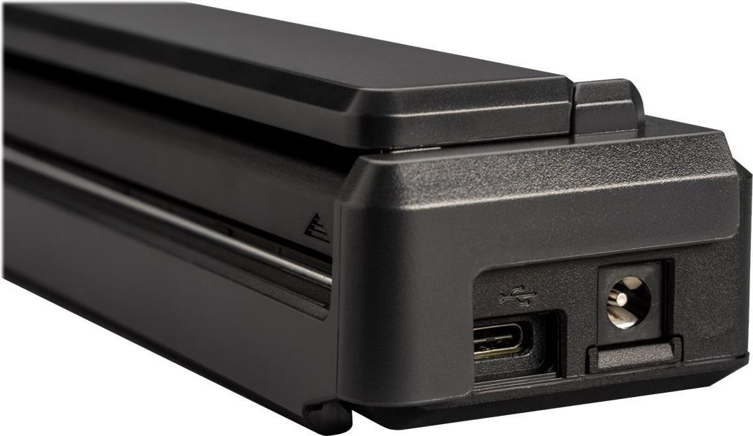 Diese Papierführung lässt sich einfach an Ihrem PocketJet Drucker befestigen und macht das Einziehen einzelner Blätter zum Kinderspiel. Das Oberteil lässt sich nach oben klappen, um einstellbare Breitenführungen zu enthüllen, die sich an die gewünschten Papier- oder Etikettengrößen anpassen und einen geraden Einzug und Druck unterstützen. Klappen Sie das Oberteil für einfache Handhabung, Transport und Lagerung wieder herunter. Durch das Design haben Sie vollen Zugang zu den USB- und Stromanschlüssen an der Seite des Druckers sowie zu den Tasten für Stromzufuhr, Papierzufuhr und Radio auf der Oberseite.