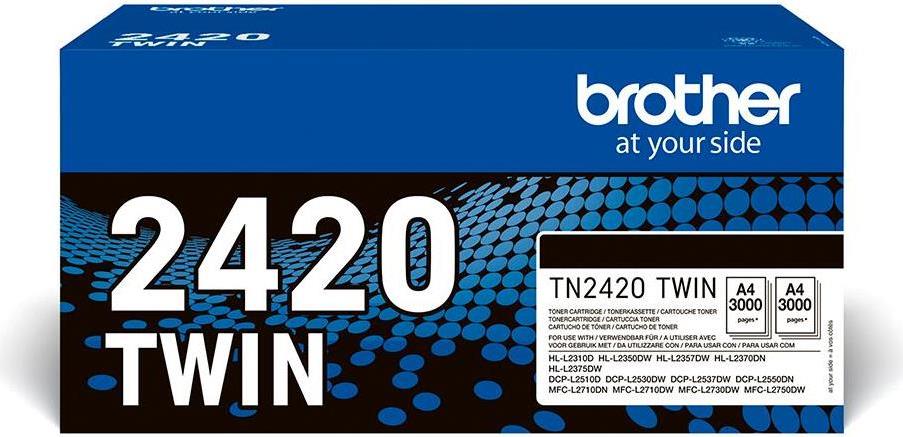 Brother TN2420 TWIN - 2er-Pack - Hohe Ergiebigkeit - Schwarz - original - Tonerpatrone - für Brother DCP-L2510, L2530, L2537, L2550, HL-L2350, L2370, L2375, MFC-L2713, L2730, L2750