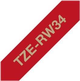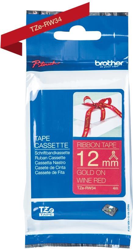 Brother TZeRW34 - Gold auf Weinrot - Rolle (1,2 cm x 4 m) 1 Rolle(n) Band - für P-Touch D600, PT-2100, 2700, 2730, 9600, 9700, 9800, D450, D600, E100, E300, E550