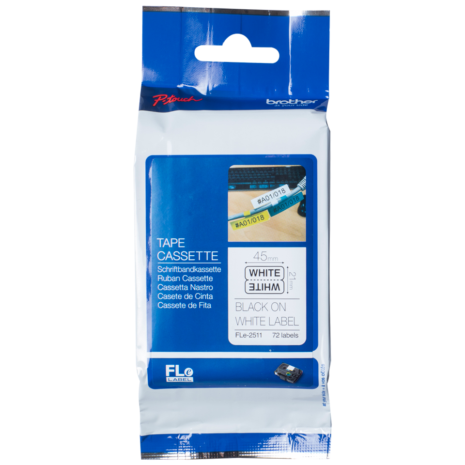 Die FLe-Bandkassetten lassen sich schnell und einfach installieren und sind in verschiedenen Etikettenfarben erhältlich, so dass Ihr P-touch-Gerät alle Ihre Etikettierungsanforderungen erfüllt.