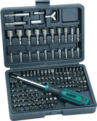 BRÜDER MANNESMANN Schraub- & Bit-Satz-Box, 122-teilig in einer Kunststoffbox, Bits aus Chrom-Vanadium Stahl - 1 Stück (M29896)