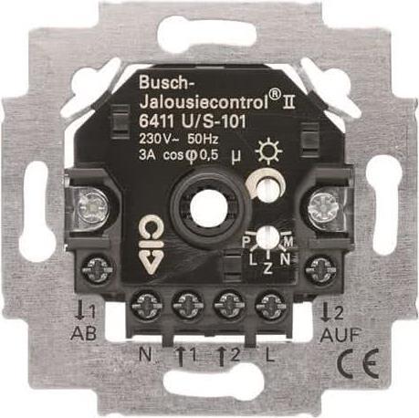 Busch-Jaeger 6411 U/S-101. Produkttyp: Auslöser Rollo/Jalousie, Befestigungstyp: Unterputzmontiert, Anzahl Kanäle: 2 Kanäle. Energiequelle: AC, Leistung: 690 W, Maximale Schaltleistung: 690 W. Breite: 71 mm, Tiefe: 33 mm, Höhe: 71 mm (2CKA006410A0379)