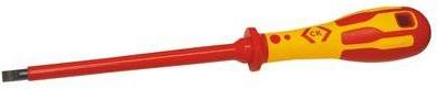 C.K Schraubendreher \"Dextro\" für Schlitzschrauben, 3x100 mm gemäß DIN 6090, VDE IEC 60900:2004, Klingen aus gehärtetem hochlegiertem Stahl, Größe 3x100 mm, Spitze mit GripTip Technology, speziell geformter 2-Komponentengriff, rot/gelb, lange feiner Griffschaft, Typenkennzeichnung am Griffende, Schaft hochisoliert, Schutz bis 1.000 Volt (T49144-030)