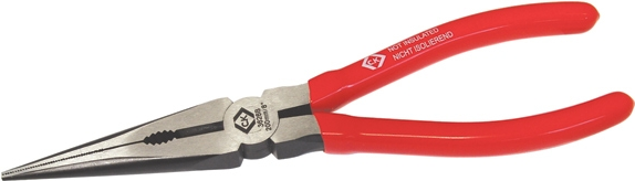 C.K Spitzzange, 200 mm, lange Backen, PVC-Griffe mit Schneide- und gezahnter Greiffläche, Schneidkapazität: harter Draht bis 1,6 mm, mittel/harter Draht bis 2,5 mm, weicher Draht bis 4,0 mm, gemäß DIN ISO 5745, Material: heißgeschmiedet aus hochlegiertem Spezial-Werkzeugstahl (T3626B 8)