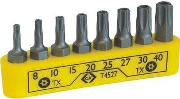 C.K. T4527 Schraubendreher-Bit Satz 8tlg., für Sicherheits-Torxschrauben; TX8; 10; 15; 20; 25; 27; 3 (T4527)