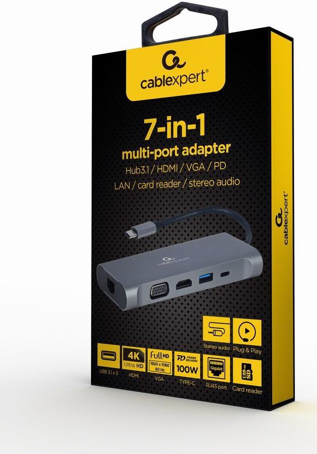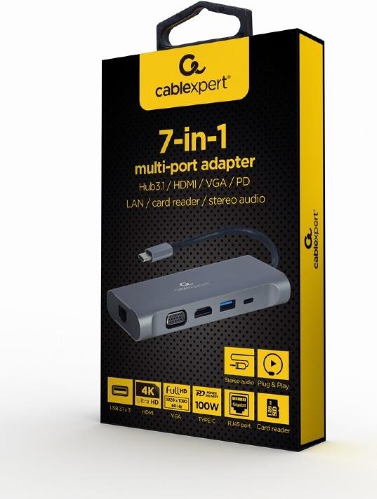 Gembird A-CM-COMBO7-01 - USB 3.2 Gen 1 (3.1 Gen 1) Type-A - 3.5mm - HDMI - RJ-45 - USB 3.2 Gen 1 (3.1 Gen 1) Type-A - USB 3.2 Gen 1 (3.1 Gen 1) Type-C - VGA - MicroSD (TransFlash) - SD - 625 Mbit/s - 30 Hz - 3840 x 2160 Pixel (A-CM-COMBO7-01)