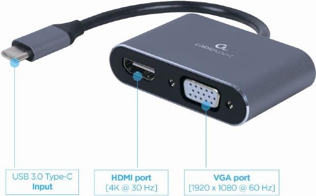 Gembird A-USB3C-HDMIVGA-01 USB-Grafikadapter 3840 x 2160 Pixel (A-USB3C-HDMIVGA-01)