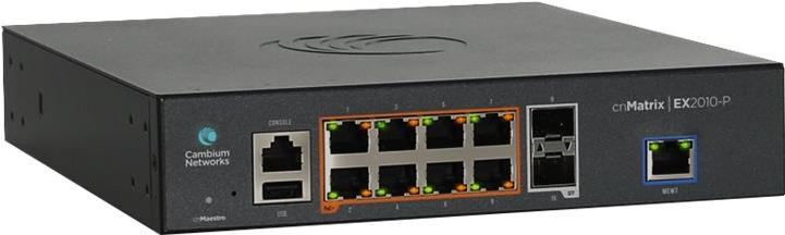 CAMBIUM Intelligent Ethernet Switch 8 x 1G and 2 SFP fiber ports no power cord L2 & L3 functionality (MX-EX2010XXA-E)