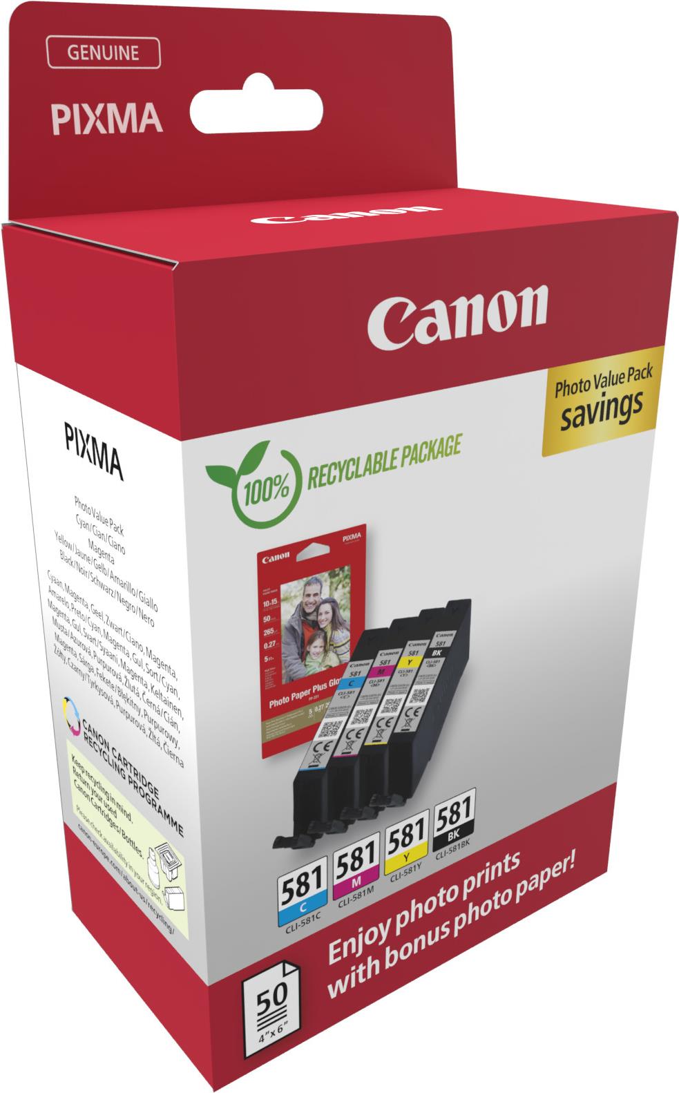 | Produktbeschreibung | Canon CLI-581 C/M/Y/BK Photo Value Pack - 4er-Pack - Schwarz, Gelb, Cyan, Magenta - original - Tintenbehälter- / Papierpaket |