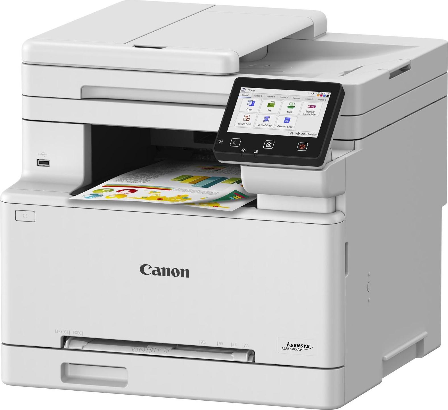 Der Canon i-SENSYS MF664Cdw ist ein Multifunktionsdrucker, der Druck-, Kopier- und Scanfunktionen vereint und damit den Anforderungen jeder Büroumgebung gerecht wird. Mit einer maximalen Druckgeschwindigkeit von 25 Seiten pro Minute für Farbe und Schwarzweiß sorgt dieser Drucker für eine effiziente Ausgabe. Er unterstützt eine Vielzahl von Medientypen, von Normalpapier bis hin zu Hochglanzfotos, und ist damit vielseitig für unterschiedliche Aufgaben einsetzbar. Darüber hinaus ermöglicht seine automatische Duplexfunktion den beidseitigen Druck und spart so Zeit und Ressourcen. Dieses Modell bietet außerdem Konnektivitätsoptionen wie USB 2.0, Gigabit-LAN und Wi-Fi sowie Unterstützung für mobiles Drucken über Apple AirPrint, Mopria und Google Cloud Print. Benutzer können Dokumente über den Touchscreen verwalten, während Sicherheitsfunktionen wie Secure Print, SSL und IP-Filterung den Datenschutz gewährleisten. Mit einer monatlichen Auslastung von bis zu 30.000 Seiten und einem empfohlenen monatlichen Volumen von 250 bis 2500 Seiten ist der Canon i-SENSYS MF664Cdw darauf ausgelegt, verschiedene Druckanforderungen effizient und sicher zu bewältigen.
