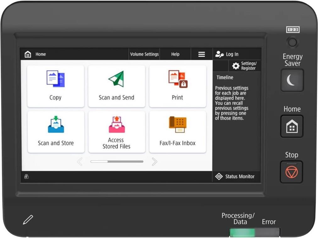 | Max. Kopiergeschwindigkeit | Bis zu 38 Seiten/Min. (einfarbig)/bis zu 38 Seiten/Min. (Farbe) |