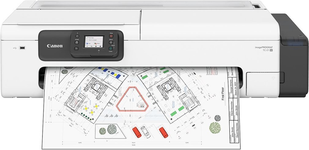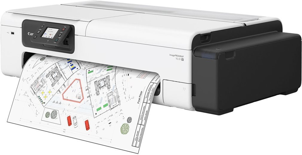Der Canon imagePROGRAF TC-21M ist ein zuverlässiger Großformatdrucker, der Ihre Druckaufgaben effizient und präzise optimiert. Mit einer Druckauflösung von 2400 x 1200 DPI liefert er lebendige Farbdrucke und gestochen scharfe Schwarzweißdrucke. Der Drucker unterstützt verschiedene Medienformate bis zu einer Breite von 24 Zoll, darunter A1-Rollen und Standardpapierformate, wodurch er vielseitig für unterschiedliche Projekte einsetzbar ist. Ausgestattet mit einem integrierten Flachbettscanner kann dieser Drucker auch Dokumente scannen, was seine Funktionalität erweitert. Sein integrierter LCD-Touchscreen ermöglicht eine einfache Navigation und Steuerung und verbessert so die Benutzerfreundlichkeit in jedem Arbeitsbereich. Zu den Anschlussmöglichkeiten gehören USB 2.0, Wi-Fi (ac) und LAN-Schnittstellen, die eine nahtlose Integration in jede Netzwerkumgebung gewährleisten. Die mobilen Druckfunktionen unterstützen Apple AirPrint, Mopria Print Service und Canon Print Service. Diese Flexibilität erleichtert das Drucken von verschiedenen Geräten ohne komplizierte Einstellungen. Der Drucker wurde unter Berücksichtigung von Umweltstandards entwickelt und ist EPEAT Gold- und ENERGY STAR-zertifiziert, was einen nachhaltigen Betrieb gewährleistet.