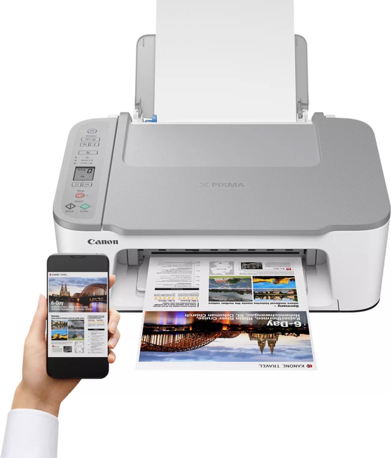 Der PIXMA TS3551i ist ein kompaktes Multifunktionssystem zum Drucken, Scannen und Kopieren. Er ist einfach einzurichten, die kabellose Verbindung erfolgt auf Knopfdruck. Und er lässt sich aus der Ferne bedienen: du kannst mit der Canon PRINT App ganz einfach kabellos vom Mobilgerät drucken, kopieren oder scannen - oder du druckst mit AirPrint (iOS) oder Mopria (Android).