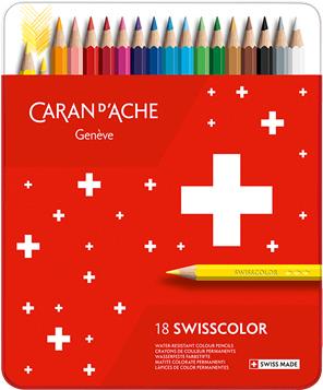 CARAN D'ACHE Buntstifte Swisscolor, 18er Metalletui wasserfeste Farbstifte, aus Zedernholz, hexagonaler Schaft, - 1 Stück (1284.718)
