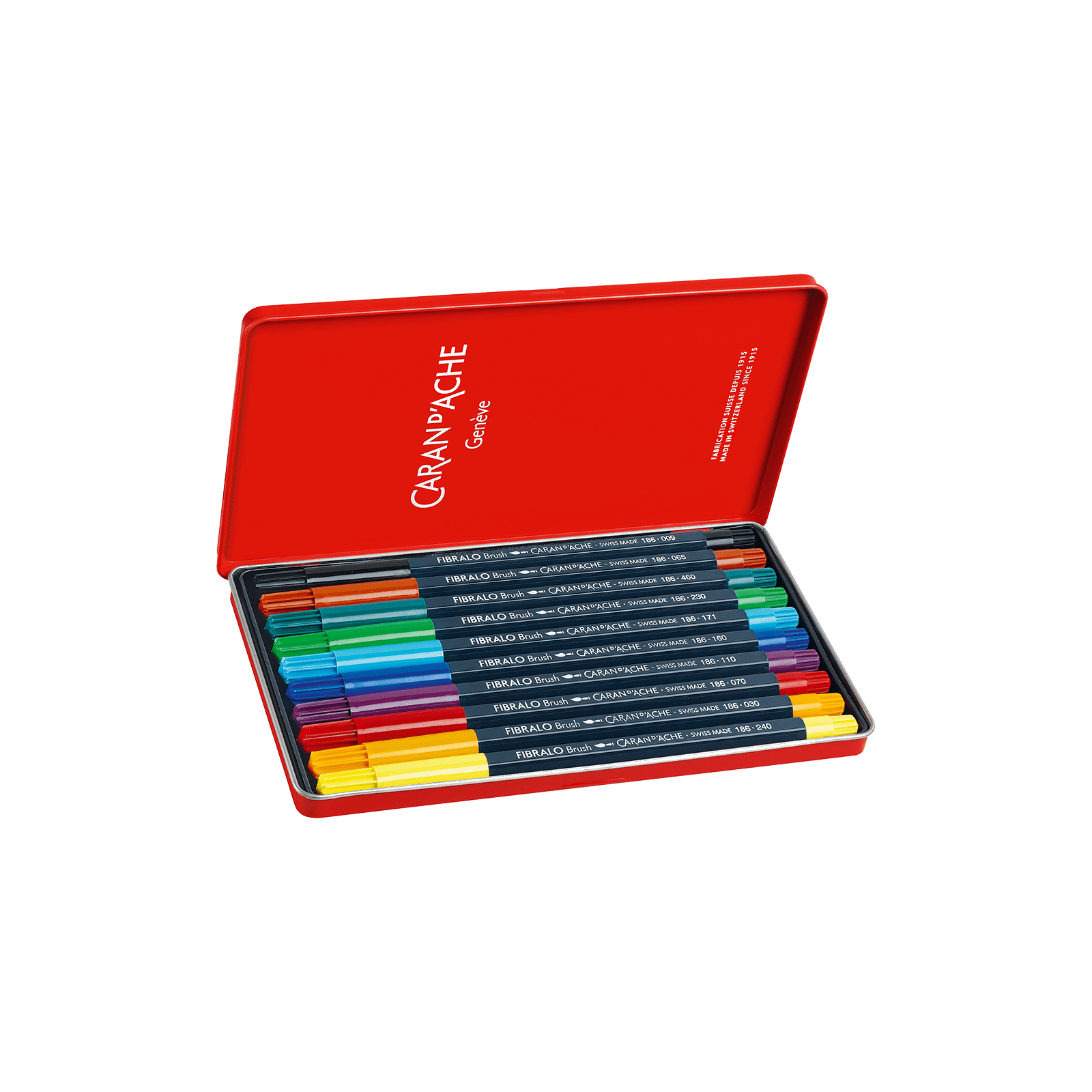 CARAN D'ACHE Fasermaler FIBRALO Brush, 10er Metalletui flexible und robuste Pinselspitze, federt nach jedem - 1 Stück (186.310)