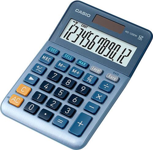 Casio MS-120EM - Desktop-Taschenrechner - 12 Stellen - Solarpanel, Batterie - Blau (MS-120EM)