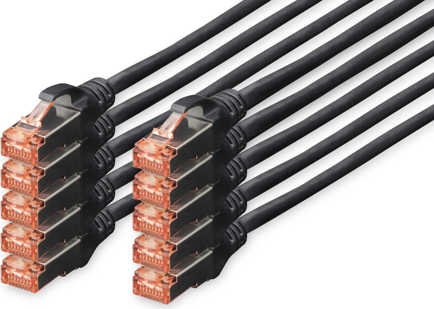 DIGITUS Professional - Patch-Kabel - RJ-45 (M) bis RJ-45 (M) - 50cm - SFTP, PiMF - CAT 6e - IEEE 802,3 - halogenfrei, geformt, ohne Haken - Schwarz (Packung mit 10) (DK-1644-005-BL-10)