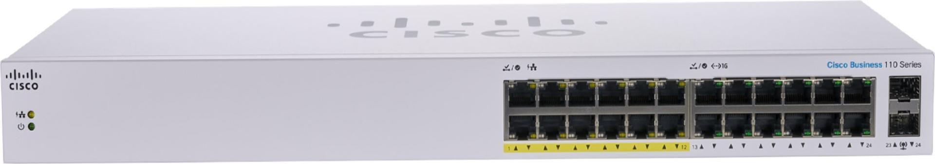 | Produktbeschreibung | Cisco Business 110 Series 110-24PP - Switch - 24 Anschlüsse - unmanaged - an Rack montierbar |