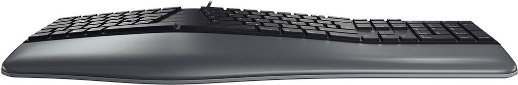 Leiden Sie unter verspannten Schultern, Verspannungen oder anderen unangenehmen Symptomen bei der Arbeit am Computer? In vielen Fällen liegt das an einer falschen Körperhaltung.Einfache Linderung kann eine ergonomische Tastatur, wie die CHERRY KC 4500 ERGO, verschaffen. Durch die spezielle Bauform nehmen Ihre Hände und Arme an dieser Kabeltastatur von ganz allein eine natürlichere Haltung ein. Ihre Schultern und Ihr Rücken werden durch die entspannte Haltung entlastet. Stress wird reduziert. Die extra weiche Handballenauflage mit Memoryschaum verhindert Druckstellen. Ihre Hände liegen bequem auf der Tastatur.Durch drei Aufstellfüße können Sie die kabelgebundene Tastatur auf der vorderen Seite erhöhen. Diese Stellung ist vor allem sehr angenehm, wenn Sie im Stehen arbeiten. Gummifüße verhindern zudem zuverlässig, dass die Tastatur rutscht - ob aufgestellt oder nicht.Ihr Computer steht unter dem Schreibtisch? Kein Problem: Ein extra langes Kabel mit USB-Stecker lässt Sie die PC-Tastatur auch dann problemlos mit dem Rechner verbinden. Die CHERRY KC 4500 ERGO ist durch Plug & Play ohne weitere Software einsatzbereit. Sie benötigen lediglich einen freien USB-Anschluss. Mit der eleganten Farbgebung und dem modernen Design ist sie auf jedem Schreibtisch eine angenehme Erscheinung.Nach einer kurzen Eingewöhnungszeit an die spezielle Bauform funktioniert das Schreiben so wie Sie es von einer CHERRY-Tastatur gewohnt sind: Einfach und unkompliziert. Multimediafunktionen (Ton lauter/leiser/aus, nächster/vorheriger Titel, Start/Pause) sind in den F-Tasten integriert. Sie können sie durch gleichzeitiges Betätigen der FN-Taste einfach aufrufen.Als weitere Erleichterung bei der täglichen Arbeit, bietet die kostenlose Software CHERRY KEYS viele Möglichkeiten zur Individualisierung. CHERRY KEYS ermöglicht den Schnellzugriff auf Apps, Dateien, individuelle Textbausteine oder Makros auf Tastendruck.Hauptmerkmale